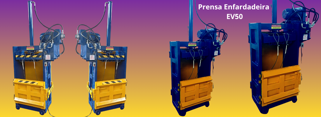 Com estrutura robusta e operação funcional, a prensa enfardadeira EV 50 é indicada para quem busca um equipamento confiável, de fácil utilização e com excelente aproveitamento em operações de reciclagem.